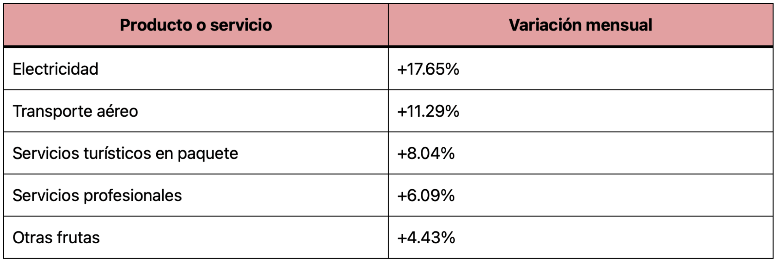 Estos aumentos se explican por la finalización de las tarifas eléctricas de verano en varias regiones del país y por el repunte temporal en los costos del transporte y turismo.