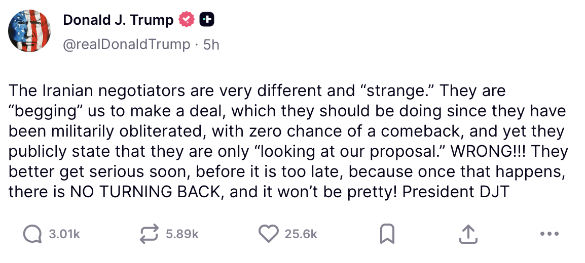 A través de su red social Truth Social, el mandatario lanzó una advertencia directa al gobierno iraní: deben actuar con seriedad en las negociaciones o enfrentar consecuencias que, dijo, podrían ser irreversibles.