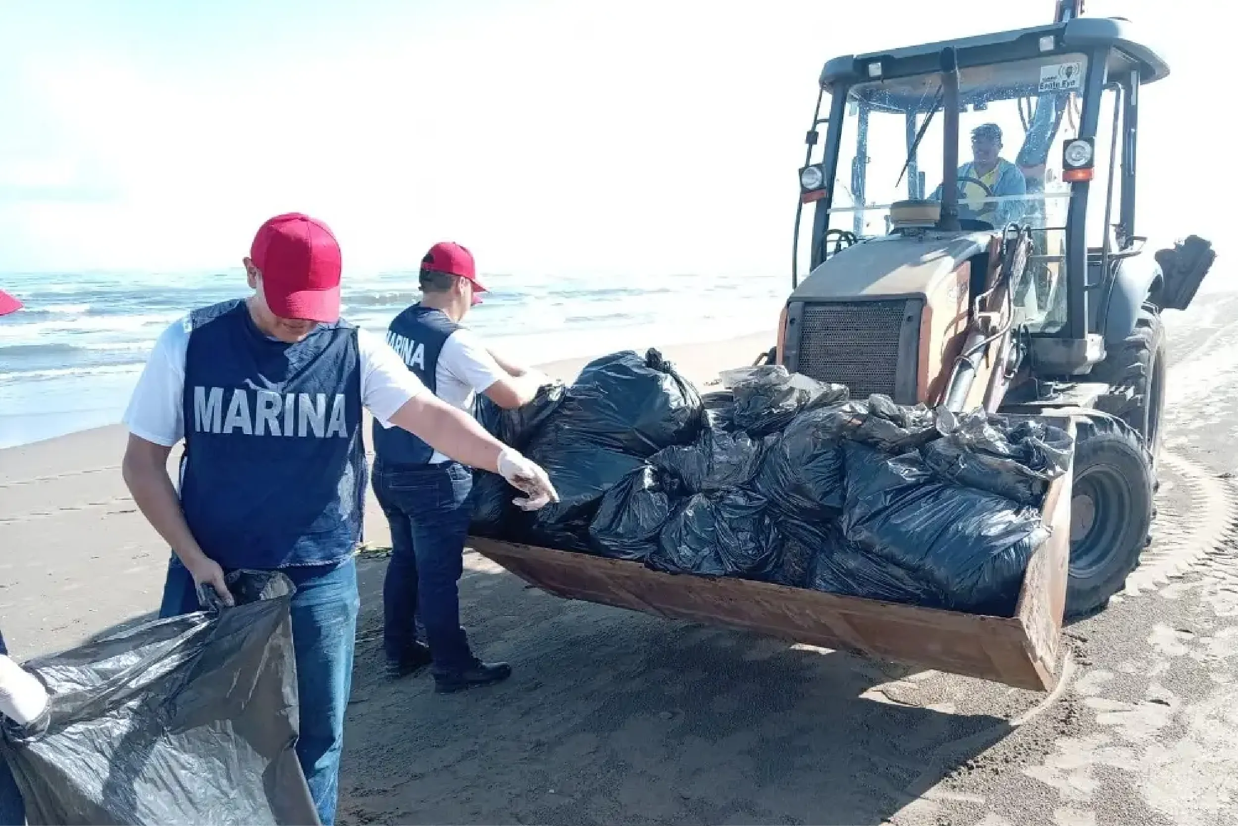 La Secretaría de Marina informó que recolectó 330 kilos de material con hidrocarburo en Veracruz. Tras sobrevuelos e inspecciones en la costa, la dependencia aseguró que no hay indicios de expansión de la contaminación hacia otros puntos del Golfo de México.
